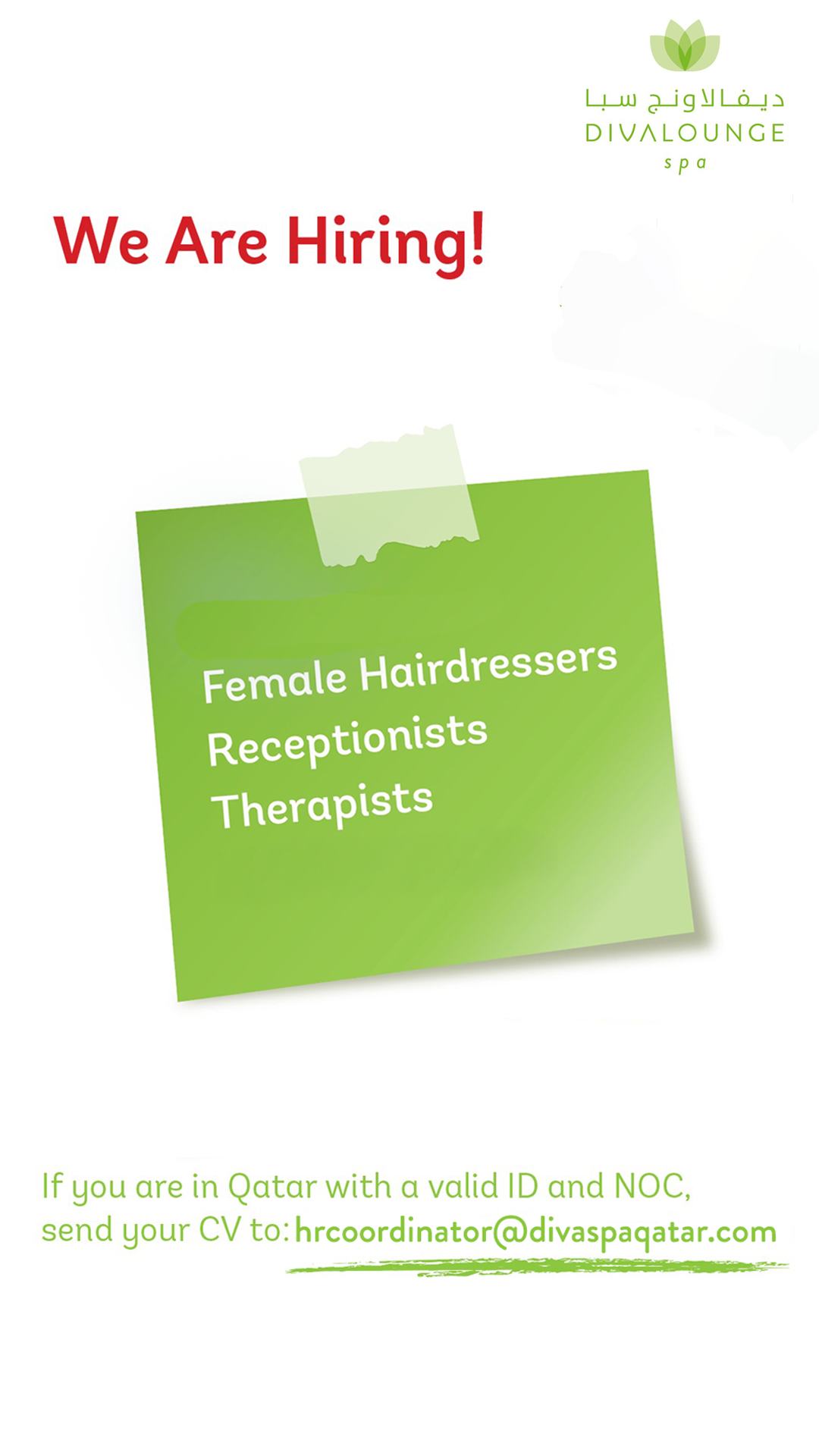 If you are interested in applying you can send your CV to hrcoordinator@divaspaqatar.com
